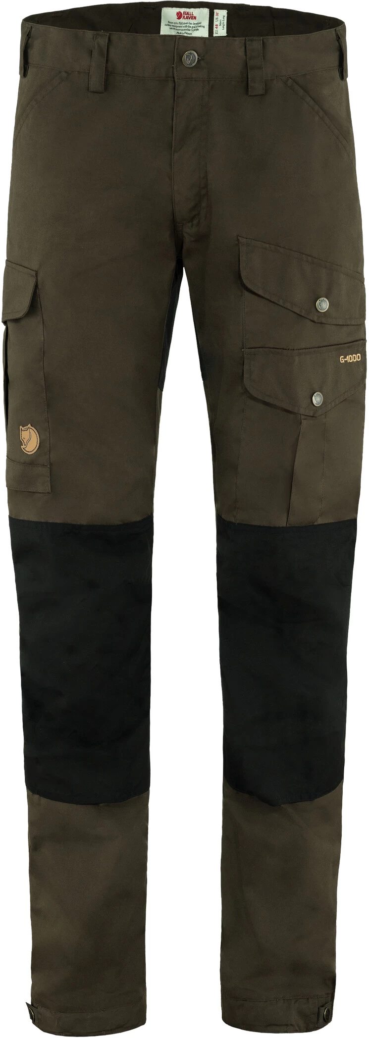 Duurzame trekkingbroek voor avonturen in de bergen en het bos. Gemaakt van duurzaam, wind- en waterafstotend G-1000 materiaal en bij de knieën en het zitvlak versterkt met tweelaags materiaal. Normale pasvorm met middellange tailleband en voorgevormde knieën die voorzien zijn van inzetstukken voor kniestukken (accessoires). Zes zakken bieden praktische opbergruimte; twee paspelzakken, twee beenzakken aan de linkerkant en een ruime kaartzak met geïntegreerd gaasvak voor smartphone aan de rechterkant. De praktische kleinere zak op het rechterbeen biedt ruimte voor een multifunctioneel stuk gereedschap. Elastische verstelbare bandjes met drukknopen aan de beenmanchetten.