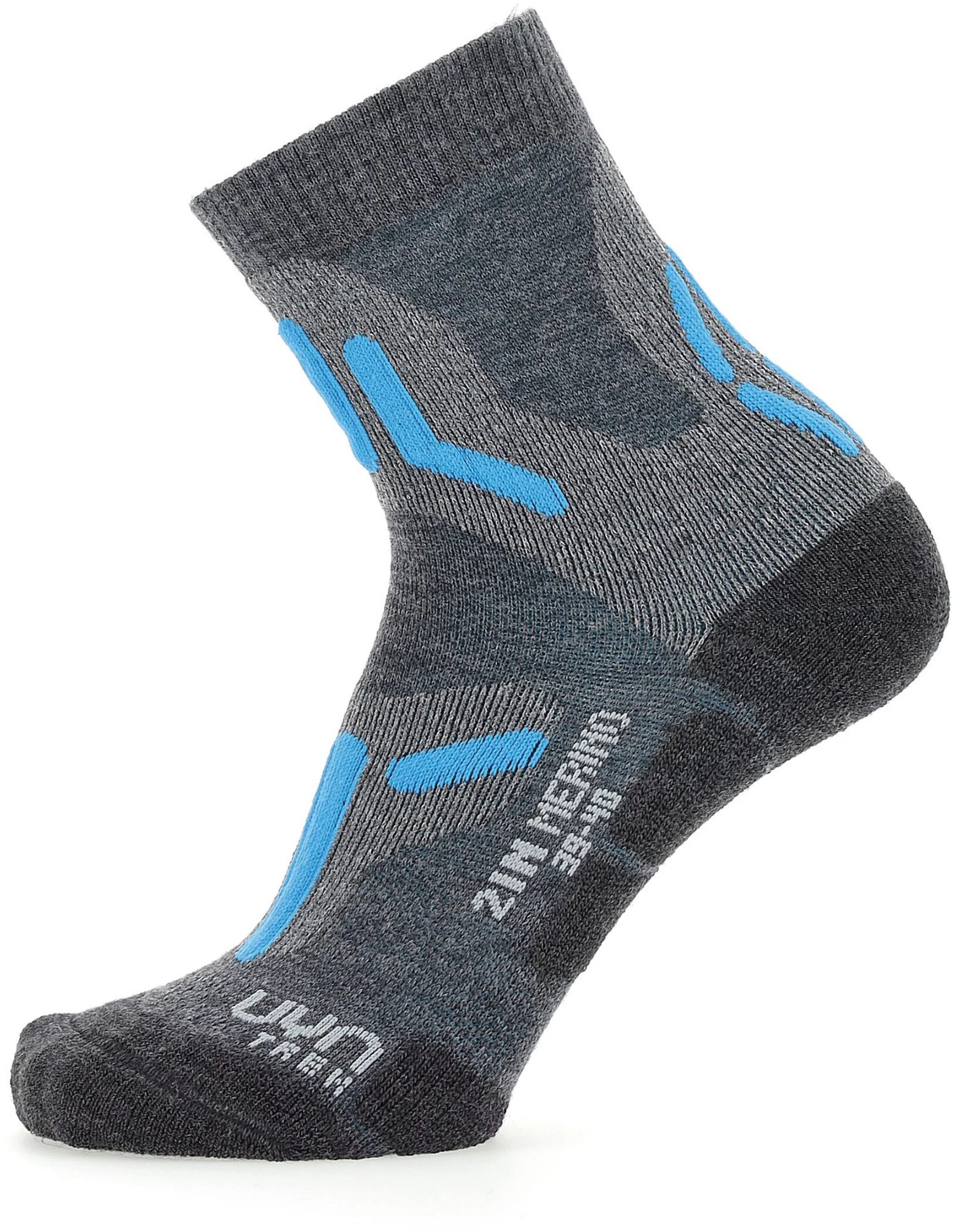Voor wandeltochten bij lage temperaturen heeft UYN de 2IN Merino sokken met hoge isolerende eigenschappen ontwikkeld: De buitenste laag is gemaakt van Merino Tenwool, een exclusieve combinatie van fijne merinowol en Fibresist-vezel. Het resultaat is een zachte, thermoregulerende en toch duurzame stof. De binnenlaag bestaat uit de hightech Texlyte Nano-vezel, die licht van gewicht is en vocht naar buiten transporteert, en de biogebaseerde Natex-vezel. Het speciale Two Layers System vermindert effectief het risico op blaren tijdens het wandelen, terwijl de driedimensionale structuren op strategische punten voor schokdemping zorgen.