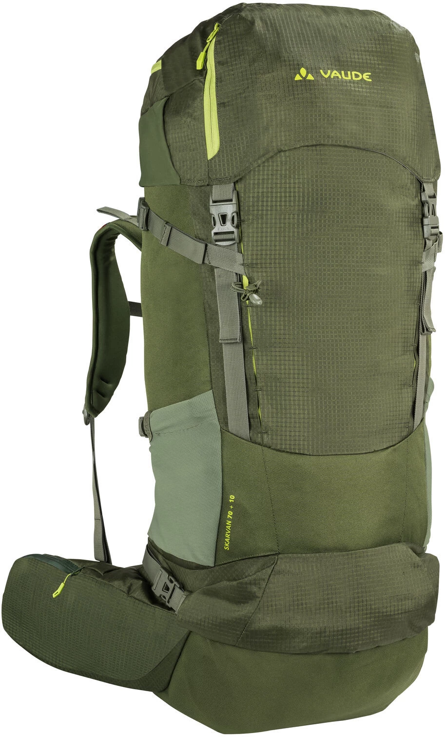Voor avontuur buiten de platgetreden paden: Wij bij veeleisende trekkingtochten de complete bagage en voedsel via lange en onherbergzame streken moet vervoeren heeft een robuuste en betrouwbare rugzak nodig met veel opbergruimte en een uitstekend draagcomfort. De modellen van de Skarvan-reeks bieden precies dat, bij een verbazingwekkend licht gewicht. Het verstelbare Tergolight Comfort rugsysteem kan individueel worden afgesteld; twee van binnen lopende frames leiden tot een zeer goede lastenverdeling en veel stevigheid. De ergonomisch gevormde schouderbanden bieden grote bewegingsvrijheid rond de schouders. Onmisbaar voor het draagcomfort en een stabiele pasvorm zijn ook de dik gepolsterde heupbanden, die voor een nog betere lastenverdeling bewerkt zijn. Deze rugzak voor zware lasten bestaat uit zeer weersbestendig, sterk waterafwerend materiaal. Om potentiële zwakke plekken te vermijden hebben we bij de trekkingrugzak geen ritssluitingen in de kwetsbare plekken gebruikt. Daarom is er toegang tot het bodemvak en hoofdvak telkens via wikkelsluitingen, die slijtvast en ook uiterst waterdicht zijn. Het volume van het hoofdvak is door het extra materiaal van de wikkelsluiting ongeveer 10 liter uit te breiden (verlenging van de “vullers”). In het ruime, afneembare en in hoogte verstelbare kap passen alle op de trail benodigde voorwerpen voor de dag. Een voorgevormde hoofdholte in de kap zorgt voor genoeg vrijheid van het hoofd, bovendien is de kap in weinig stappen te veranderen in een kleine rugzak voor de top of een verkenningstocht rondom het kamp. In een grote heupgordeltas met watervaste ritssluiting passen zaken die ook tijdens het lopen onder handbereik moeten zijn.